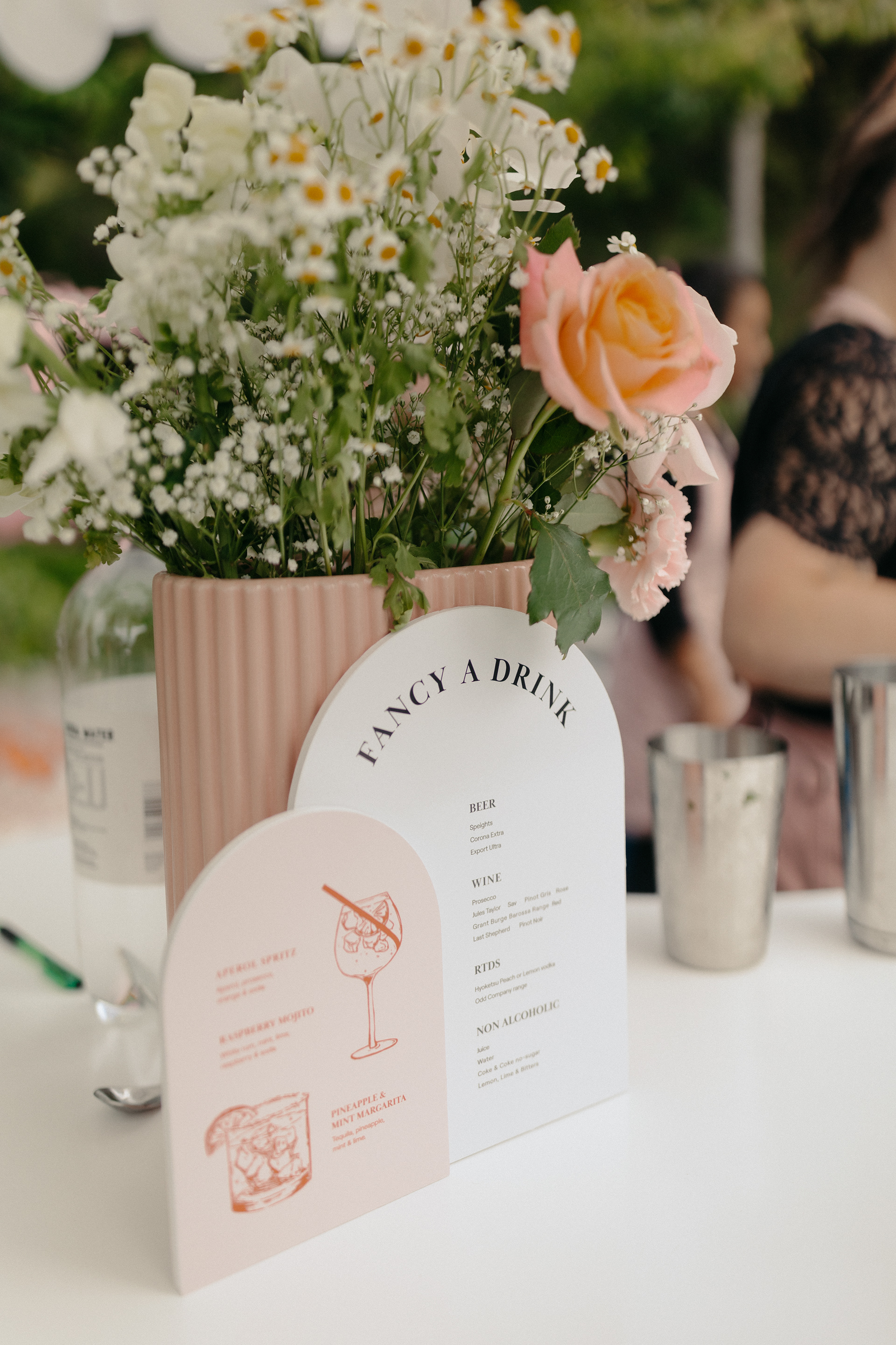 A collection of custom design work for an elegant and bright summer wedding. This project featured digitally crafted menus and signage, as well as hand-painted wayfinding signage.